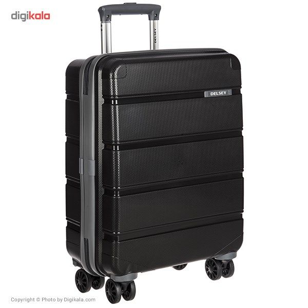 کسانی که همواره به دنبال اجناس با کیفیت بالا هستند بدون شک از داشتن چمدانی مانند مدل Precisio در سایز کوچک از تولیدات شرکت فرانسوی دلسی استقبال میکنند. این محصول کوچکترین سایز از مدل Precisio بوده ولی بازهم ارتفاعی برابر با 55 سانتیمتر دارد که در کنار ابعاد دیگرش آن را به گزینه مناسبی برای سفرهای کوتاهمدت و یا حتی چند روزه یک فرد تبدیل میکند. جنس بدنه این محصول از پلاستیک و کمی انعطافپذیر بوده ولی در عین حال استحکام لازم برای نگهداری از لوازم داخل خود را دارد. برای اینکه محتویات داخلی چمدان به آسانی در دسترس هر کسی نباشد، یک قفل TSA سری 007 با رمز سهرقمی بر روی چمدان تعبیه شده که میتوان زیپها را به آن متصل کرد. در داخل محفظهی داخلی چمدان، یک جیب با رویه توری قرار دارد که برای نگهداری پوشاک مناسب بوده و یک جیب کوچک زیپدار نیز برای نگهداری اشیای قیمتی لحاظ شده است. برای حمل راحت این چمدان نیز دلسی یک دسته تلسکوپی در بالای آن قرار داده که در کنار چهار چرخ با قابلیت چرخش 360 درجه میتوان چمدان را به سادگی بر روی سطح با خود کشید. چمدان دلسی مدل Precisio سایز کوچک کیفیت ساخت خوب و بالایی دارد که در کنار طراحی مناسب نمونه یک چمدان قابل اتکا برای سفر است.